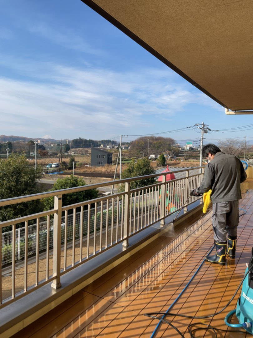気持ち良い青空に白く化粧した富士山景色を見ながらお掃除しています。