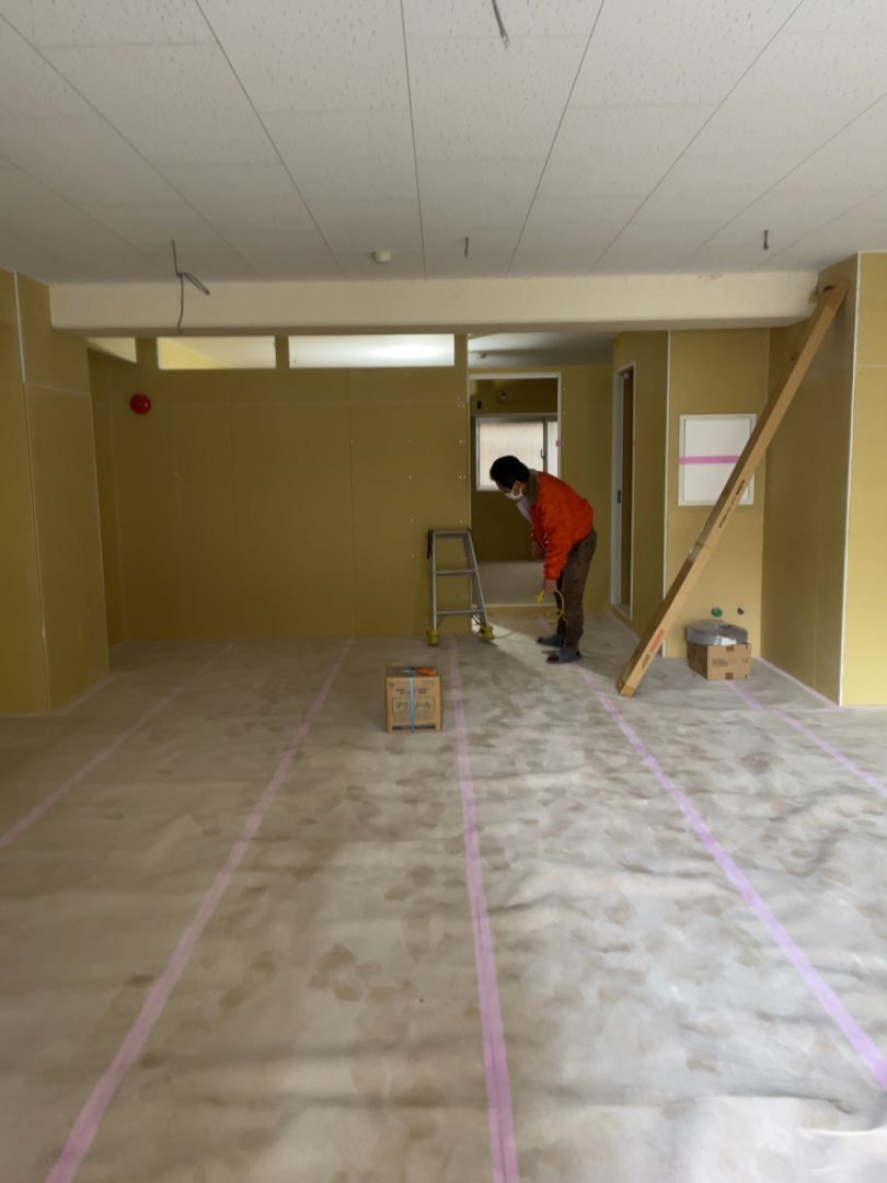 同級生の物件の壁紙、タイルカーペットの工事です。仕上がりが楽しみです。