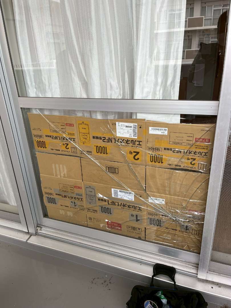 ベットがガラスに当たってしまい破損してしまったようで緊急でとご依頼をいただきました。